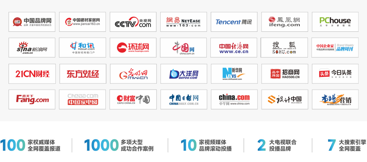 2兩大電視頻道投播 · 7大搜索引擎全面覆蓋 · 10多家視頻媒體展播 · 百家權威媒體全年報道關于愉升